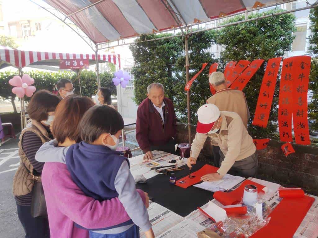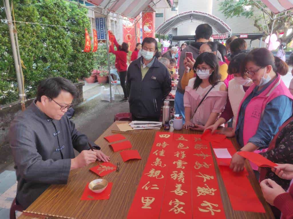 值歲末寒冬之際,迎接辛丑金牛年到來,五結鄉公所與宜蘭縣蘭陽美術學會合作,於110年1月16日(星期六)上午9點30分,在五結鄉公所前廣場辦理「名家揮毫送春聯」活動,活動中除了安排利澤國小舞獅隊廣東獅表演揭開活動序幕外,還重磅邀請陳忠藏、王文志、黃朝松、吳政安等4位書法名家,現場揮毫書寫350份春聯分送給現場鄉親;此外還備有紅包袋350份及甜湯,讓大家過個溫馨如意的新年。