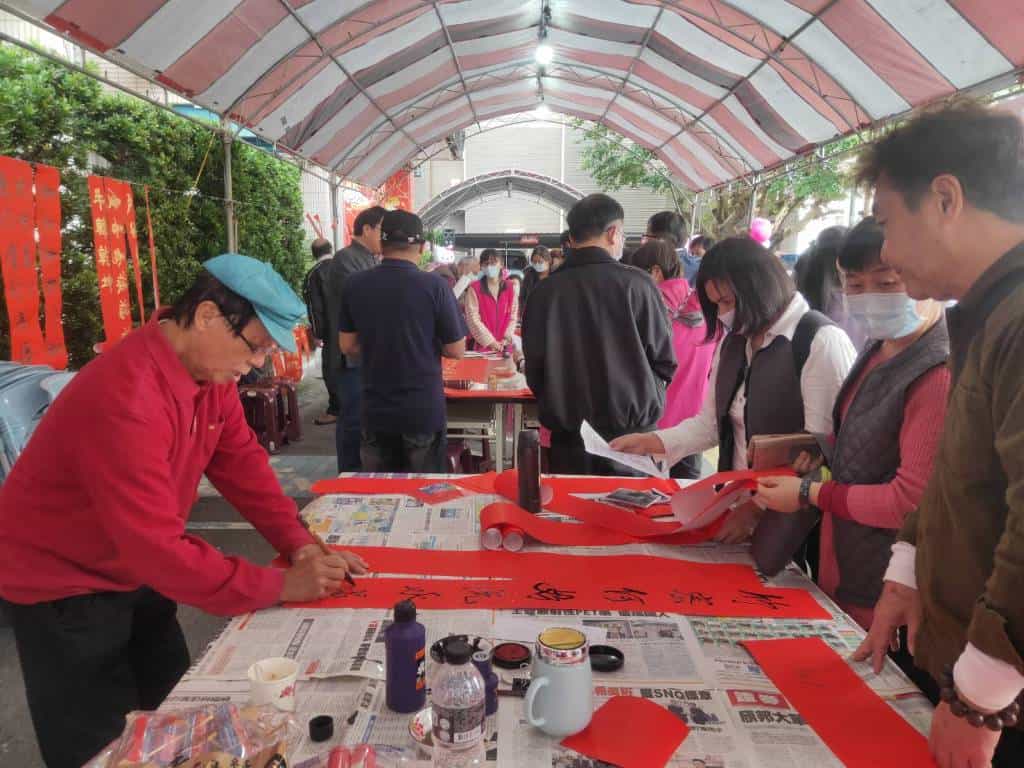 辛丑年代表的生肖是牛(金牛),民眾可選擇自己喜愛新春佳句,提供現場書法老師書寫後領取,希望大家都能帶著滿意的春聯回家,在新的一年牛年鴻運、扭轉錢坤、開心過好年。