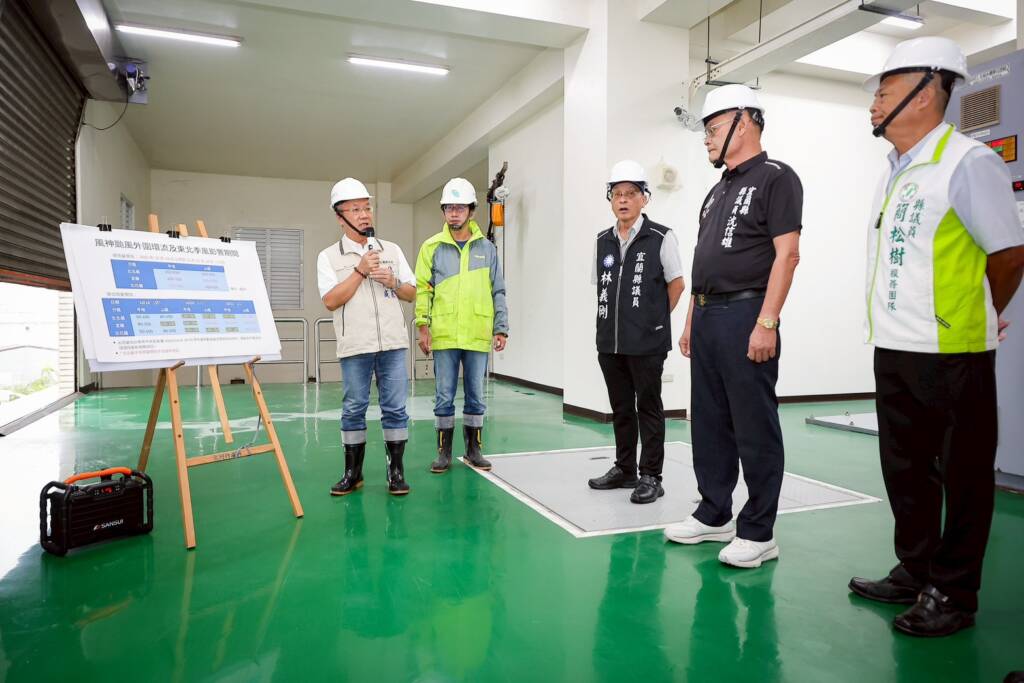 林代理縣長茂盛今(19)日在「風神」颱風引起豪雨接近前,特別至五結抽水站視察抽水機組運轉效能,檢視縣府防汛整備與應變機制辦理情形,指示水利資源處同仁詳實檢查並覆核確保各抽水站、移動式抽水機、淹水感知器等防汛設備正常運作,縣府並於本月16日預先通報本縣12公所及相關單位整備人力及物資嚴陣以待,盼能超前啟動布署、事先預防以保障縣民生命財產安全,並提醒民眾應一同進行防災整備動作,期盼縣民攜手合作,順利度過各項挑戰。