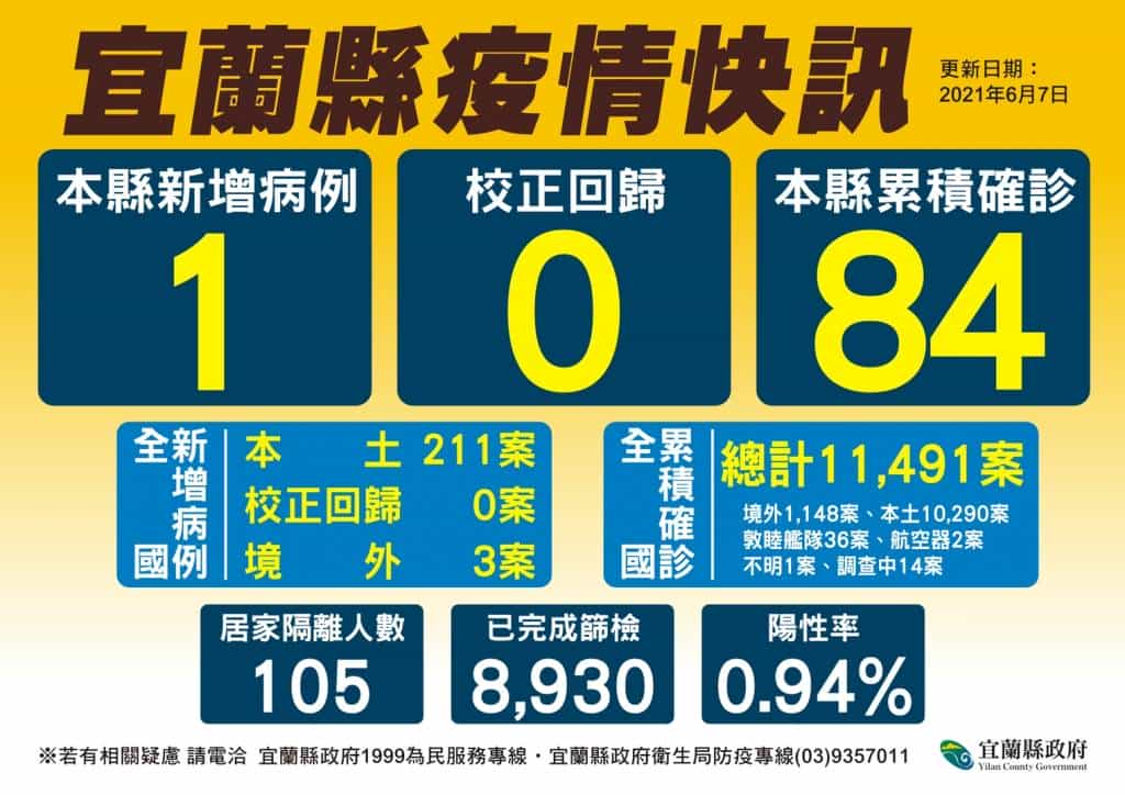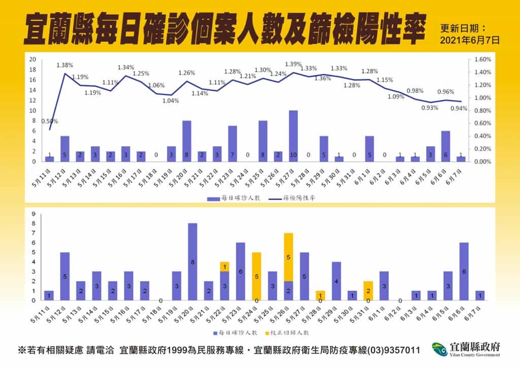 宜蘭今(7)日新增1例個案,縣府已進行相關個案的追蹤管理,警方另查獲一起釣魚場違反暫停營業案。此外,衛福部已宣布已編列預算用來購買全民公費疫苗,宜蘭縣林姿妙縣長今(7)日感謝中央聽取縣府聲音,也宣布原規劃購買疫苗經費,將全數轉為紓困使用。