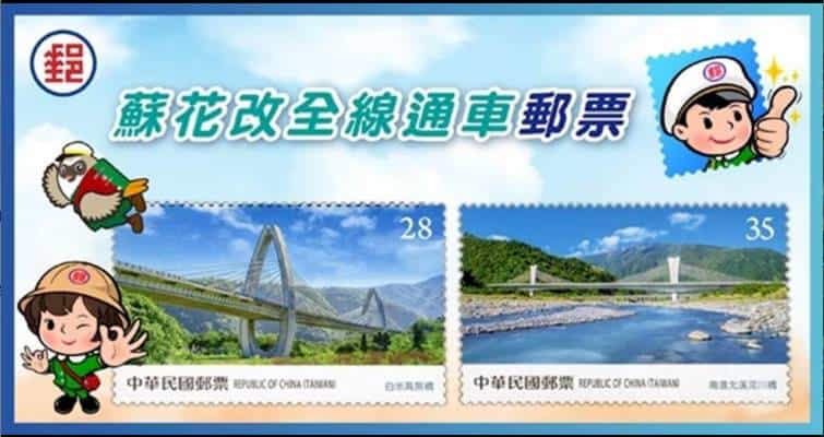 中華郵政公司為慶祝台9線蘇花公路山區路段改善計畫(簡稱蘇花改)預計於109年1月6日全線通車,特以白米高架橋及南澳北溪河川橋為題材,訂於109年1月3日發行「蘇花改全線通車郵票」1套2枚,數量有限,欲購從速,售完為止。
