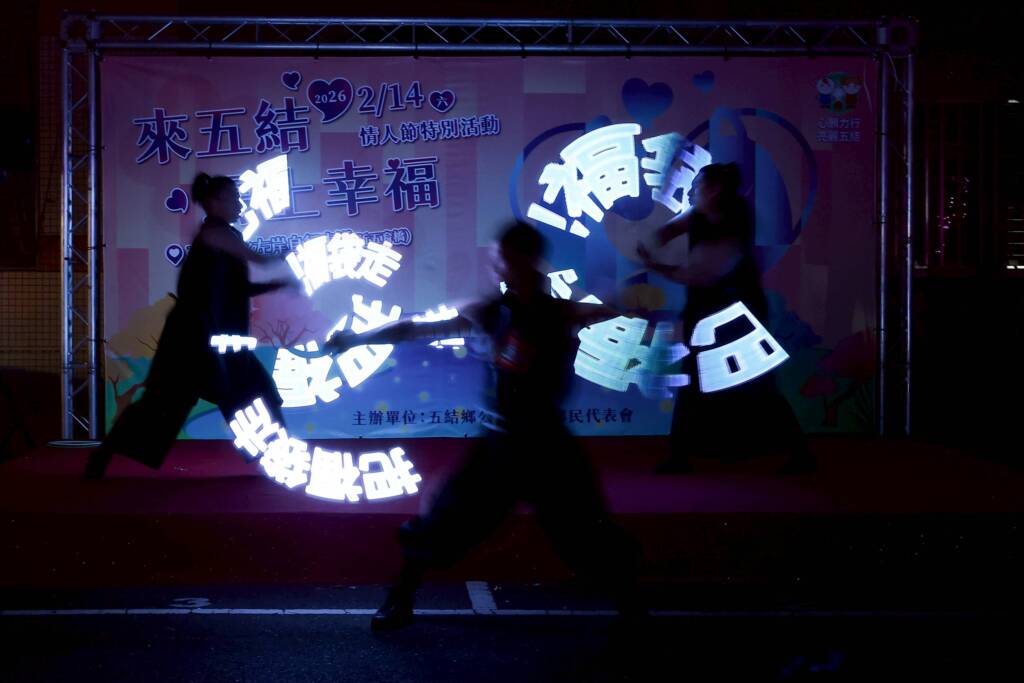 本次情人節活動自下午4時起熱鬧展開,首先由「天馬戲創作劇團」帶來親子戲劇《蟲蟲探險家》,以生動活潑的表演形式,融入環保與愛護自然的教育意涵,適合親子共同欣賞;接續由五結鄉立幼兒園帶來充滿活力的舞蹈演出,展現在地孩子的青春朝氣。傍晚時分進行活動開場及點燈儀式,象徵幸福光芒正式點亮五結情人夜。
