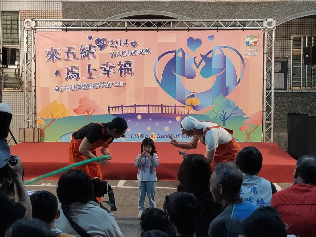今年西洋情人節適逢農曆春節前,為迎接返鄉過年的遊子及來訪親友,五結鄉公所特別擴大辦理情人節活動,期盼在年節團聚的氛圍中,為鄉親與遊客獻上一場溫馨又熱鬧的節慶饗宴。活動內容在規劃上,也因應春節前的時序特性,特別安排適合全家大小共同參與的親子戲劇、互動表演與歡樂秀,讓不同年齡層的民眾都能自在參與、共享幸福時光。