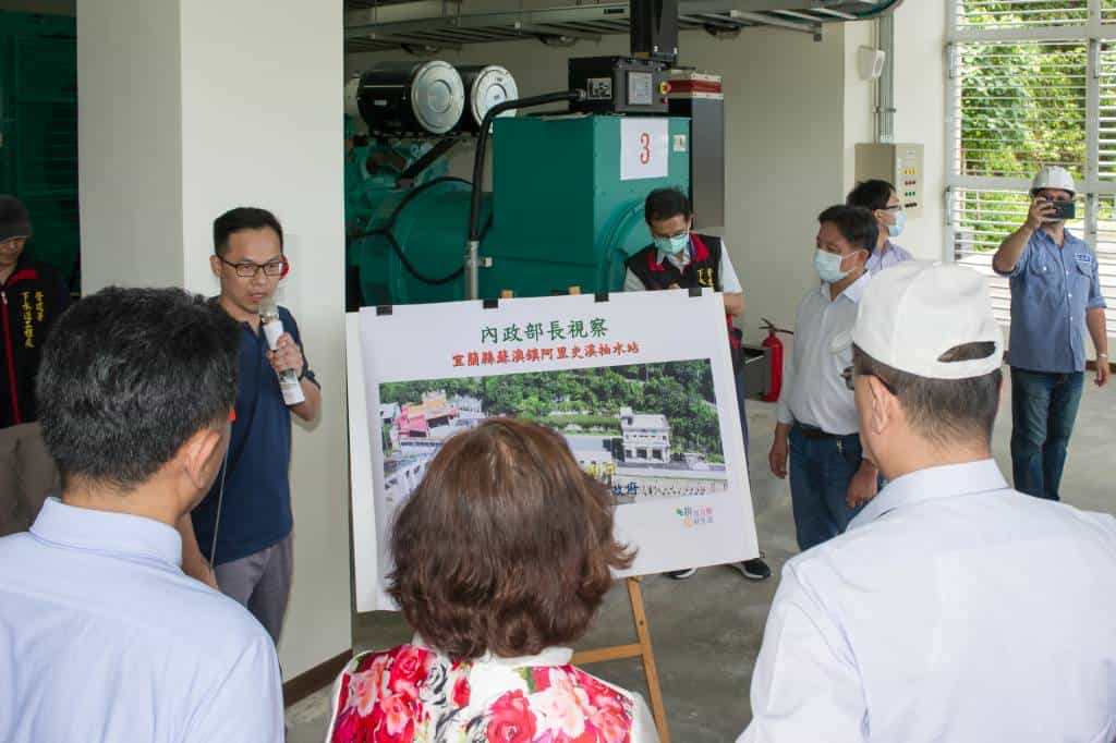 內政部徐國勇部長今(30)日上午視察宜蘭縣防汛整備作業,首站前往去(108)年完工的蘇澳鎮阿里史溪抽水站,林姿妙縣長全程陪同,並表示防汛期已到,縣府全力做好防災準備,期阿里史溪水站能在豪大雨及颱風來襲時發揮其抽排水功能,大幅降低蘇澳市區的水患威脅。