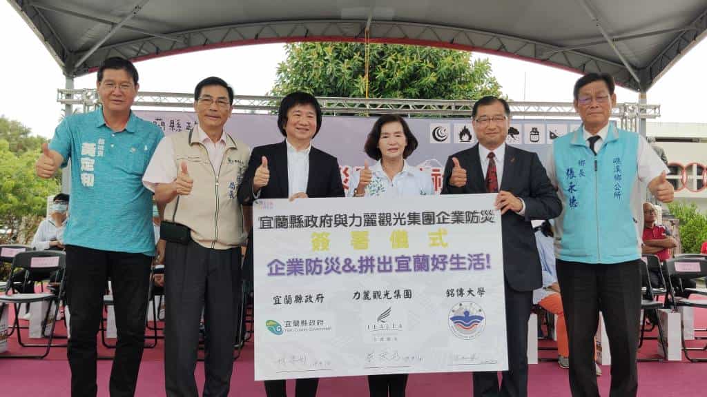 另外,經過銘傳大學之媒合,宜蘭縣政府與力麗集團簽訂合作備忘錄,由縣長林姿妙與力麗集團蔡宗易董事長共同簽署,企業與公部門的合作,不僅是結合民間與政府資源,提升防災能量,更促進企業與鄰近社區建立更友好的鄰里關係。