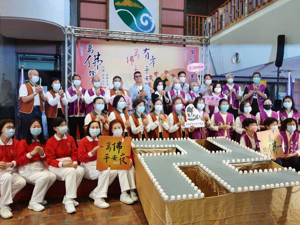 佛燈如心燈,點一盞燈供萬佛!新冠疫情打亂全球人心,5月適逢佛陀聖誕與母親節,8日至9日,靈鷲山蘭陽講堂與宜蘭縣孝親尊師聯盟善心、善行加乘,在宜蘭運動公園體育館廣場舉辦第14屆「有孝平安年~甲父母洗腳」、「萬佛燈會~萬佛平安夜」,8日中午12點,以啟動萬佛燈揭開序幕,讓大眾淨心浴佛,晚間在1萬尊佛前,繞萬佛聲聲佛號中與萬佛印心,感受萬燈齊明的溫暖;9日在萬佛前為父母洗腳報親恩,提醒人們及時行孝行善,過一個不一樣的母親節。