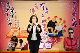 靈鷲山蘭陽講堂以「一佛出世萬佛禮讚;供一盞燈結萬佛緣」理念,舉辦萬佛燈會,歡迎萬佛光臨為佛祝壽。21日記者會由縣長林姿妙牽引視障歌手林信宏出場演唱「愛的箴言」,並表演薩克斯風,林信宏老師說,歌詞裡「我將青春付給了你,將歲月留給我自己,我將生命付給了你….」每一句都在訴說母親用青春和溫暖的生命照顧孩子,讓人感動,現場貴賓在歌聲中陸續持LED佛燈出場,並擺在卍字燈上,所有燈點亮那一剎那,美麗極了!彷彿形成一個善的結界,正念能量相應人間平安吉祥善願,發願受戒的心清淨無染,在同喊「萬佛平安夜,宜蘭好生活」、「甲父母洗腳,母親節快樂」聲中,邀請大家參加8日、9日活動,希望帶來平安、圓滿的祝福。