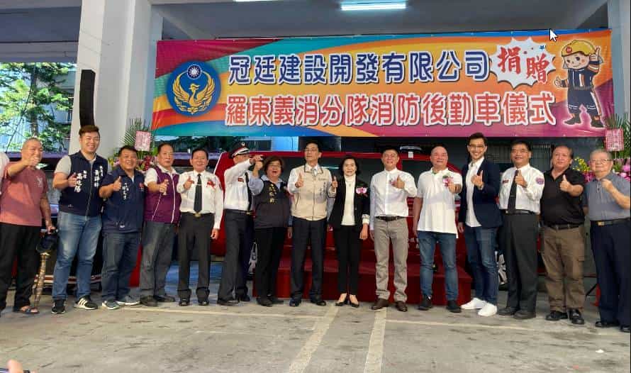 宜蘭縣義勇消防總隊第二大隊羅東分隊於今日上午在消防局第二大隊羅東分隊舉行消防後勤車捐贈典禮由冠廷建設開發有限公司董事長吳冠廷親自出席捐贈,由羅東義消分隊長許志賢代表受贈。