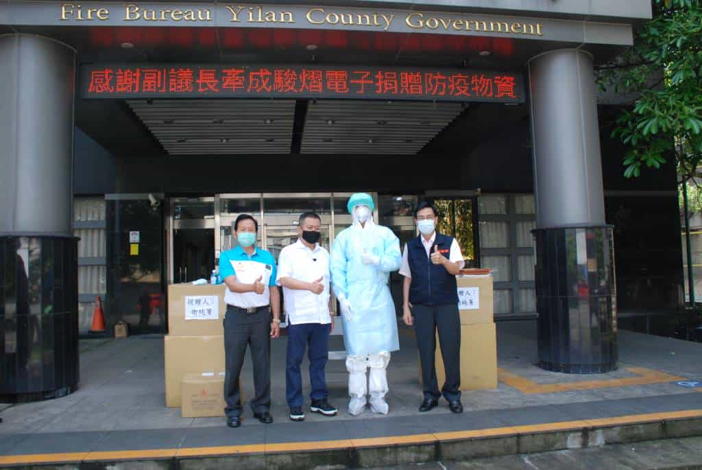 駿熠電子科技股份有限公司董事長劉憲治、副董事長衛純菁及股東蔣秀華為宜蘭縣議會副議長陳漢鍾好友,陳副議長體認疫情嚴峻,了解第一線消防救護人員亟需防護衣執行救護工作,特別牽線好友慷慨捐贈隔離衣1,000件及漱口水1批予縣府消防局,供第一線救護人員使用