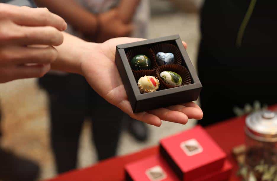 此次的巧克力禮盒以茶為主軸,製作成各種不同類型、口味的巧克力,組成四入一組200元的禮盒,一半捐出作公益,歡迎大家訂購❤️