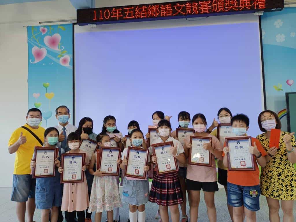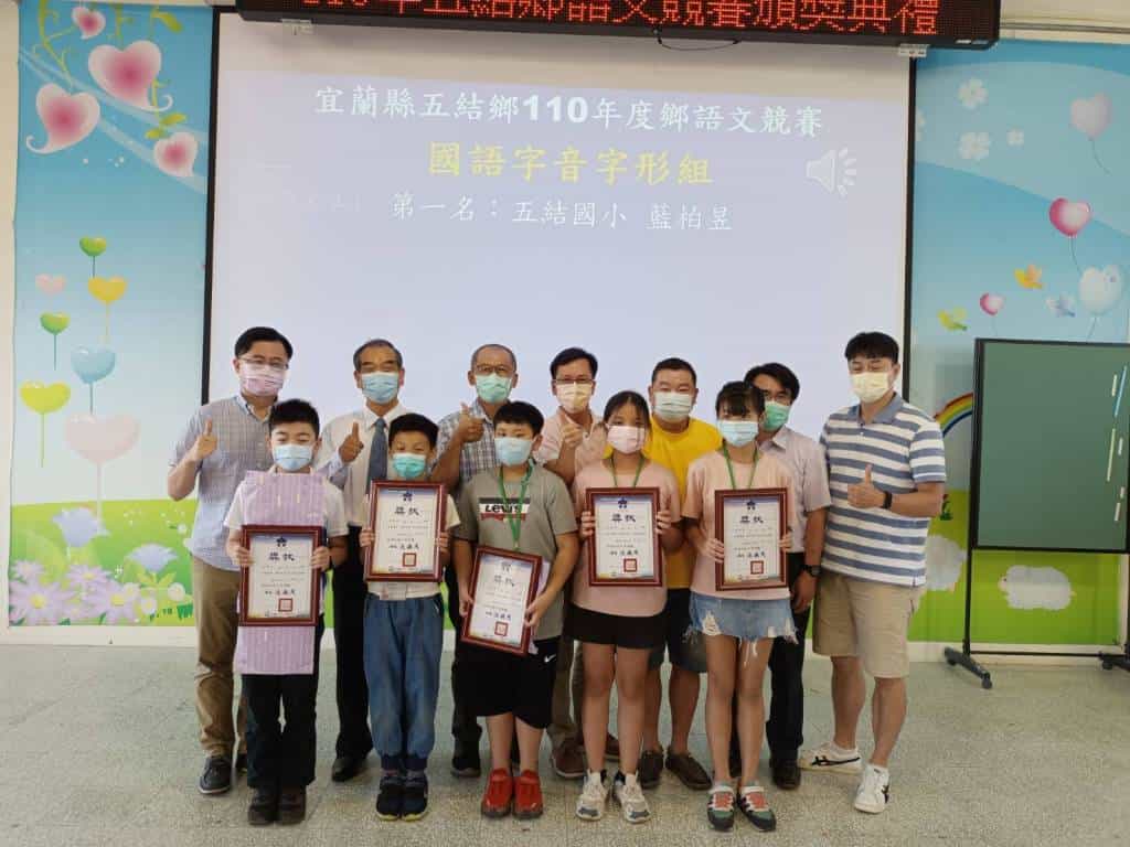 為鼓勵五結轄內各國小加強語文教育提高研習語文興趣以傳承及弘揚文化底蘊,五結鄉110年度語文競賽於9月5日(星期日)早上9點在孝威國小舉行,比賽結果在沈德茂鄉長孝威國小視聽教室為優勝學子進行頒獎鼓勵