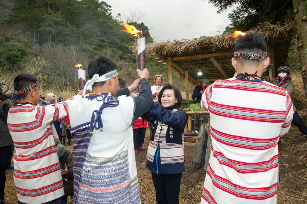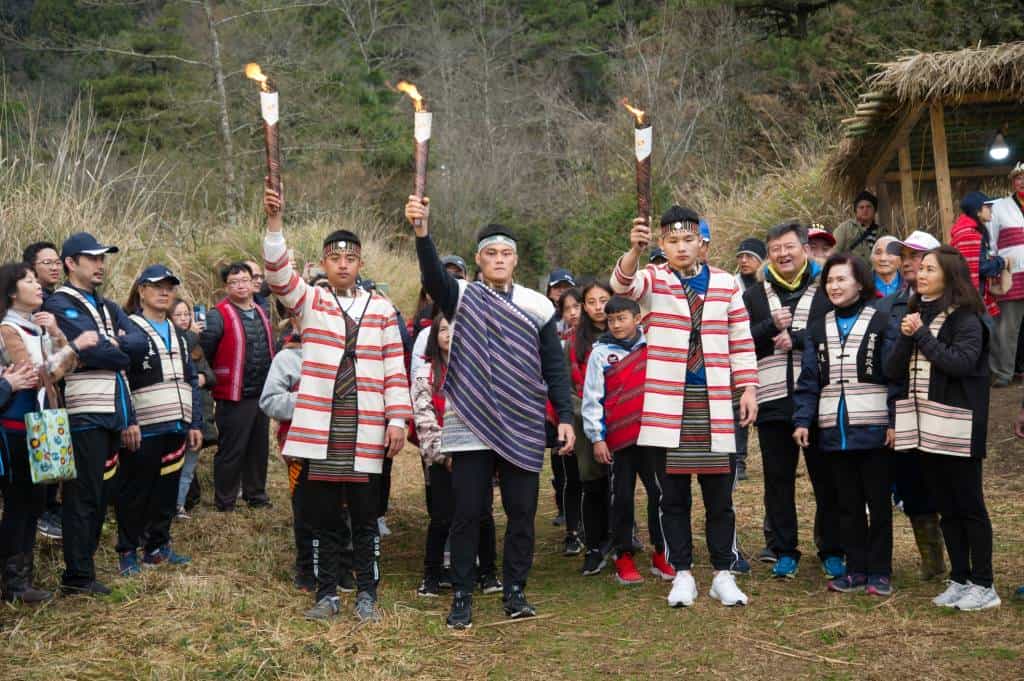 取火過程首先由耆老教導三兄弟並示範打火石取火過程,接著由三兄弟親自學習並以打火石取火成功,最後耆老將引火把轉交給林姿妙縣長、林哲宏副署長及高金素梅立委,其將引火把點燃至母火盆,再由三人手持神聖之火炬至母火盆點燃後,最後交付予三兄弟,順利完成聖火點燃儀式,其三兄弟即刻帶隊出發將聖火傳遞繞行全臺灣各縣市。