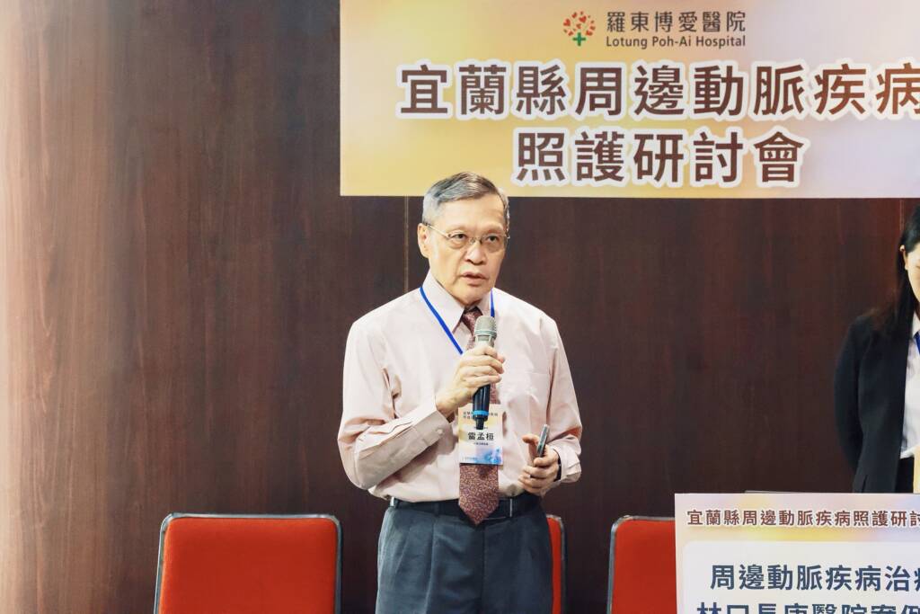 為提高疾病照護品質、進而減少截肢機率發生,羅東博愛醫院特別邀請林口長庚醫院心血管導管中心陳俊吉主任,以及宜蘭地區基層診所醫師參與疾病研討會,心內外科、整形外科與高壓氧中心等專科團隊也一同與會,互相交流對周邊動脈疾病的治療經驗。期望第一線社區醫師能與醫院合作,診所醫師成為前期的「偵探」,及早發現疾病並將潛在病人轉診至醫院。