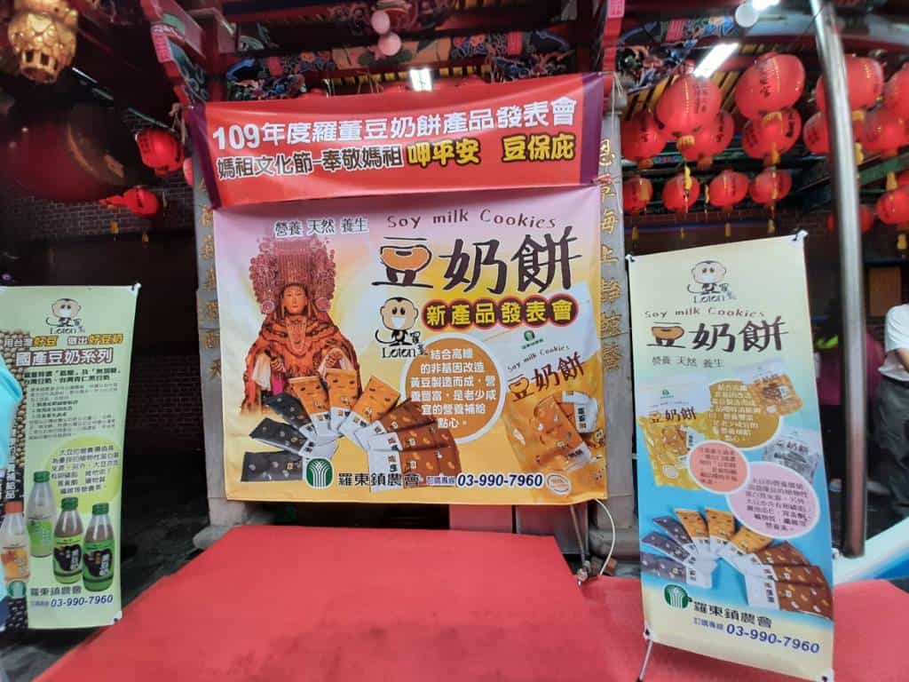 羅東鎮農會秉持「羅農嚴選、國產大豆、全豆好物、營養好食」的誠信理念,好東西不僅要與好朋友分享,好東西更要奉敬給媽祖表達感恩的心意,預訂於10/23(星期五)起駕及10/25(星期日)回鑾媽祖遶境活動中將媽祖加持的豆奶餅,分食給遶境信徒祈求媽祖庇佑宜蘭縣風調雨順,五穀豐收。