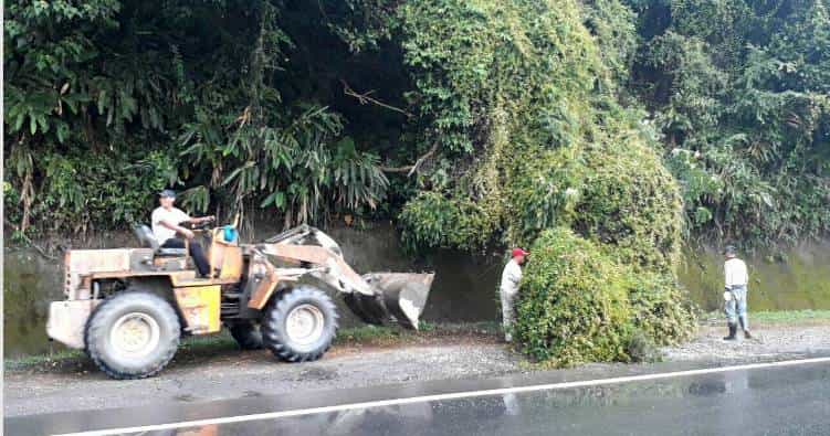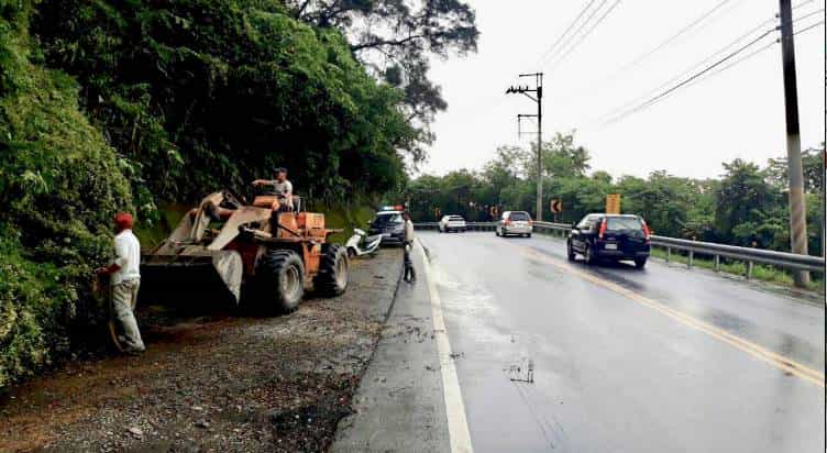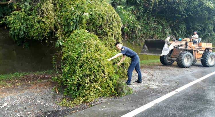 員山鄉台七線104.7公里處有落石影響交通,宜蘭分局大湖所警員鐘立達於今(26)日下午接獲勤務中心通報,前往查看,該路段因邊坡土石鬆動,造成路樹傾倒,為避免危及用路人行車安全,員警先將傾倒路樹移置路旁後,立即通報頭城工務段前來處理,並於現場協助疏導交通,隨時注意他處有無土石坍塌等情事。