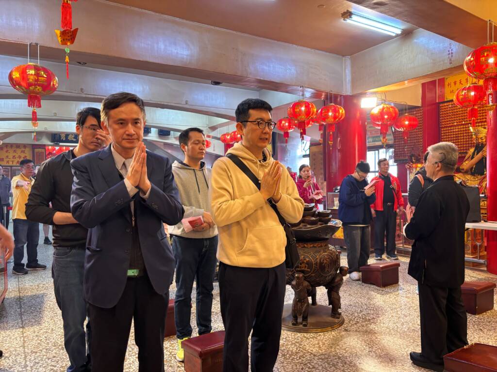 林茂盛代理縣長春節走春參觀『金福德財神銀行』深感『金伯公』慈悲為懷賜福善信,這種現代化信仰符合現代人『健康信仰、打拼人生』新觀念,特別在二月二日土地公生,大清早八點來敬獻『金福德財神銀行』匾額。