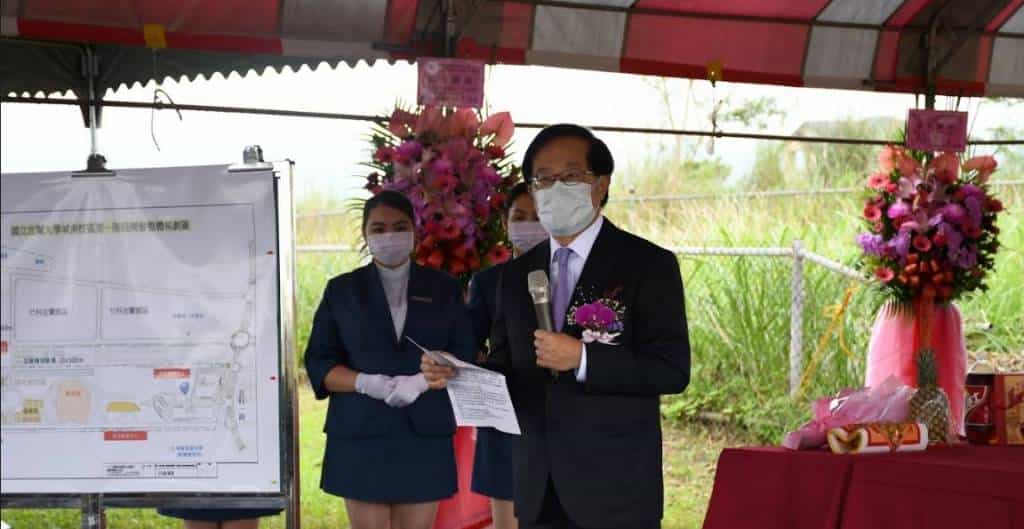 田中央聯合建築師事務所黃聲遠建築師於致詞時表示,置身於在城南校區中,可以感受到飛翔的意境,有一種起飛的感覺,這個基地充滿魅力,過去日據時期的南機場,使得周邊有許多機堡、掩體、塔台等讓我們對過去歷史充滿想像的機場元素。如今非常難得的,我們宜蘭大學仍保有這個長達一公里的壯闊尺度,並且指向著我們宜蘭的精神象徵-龜山島。