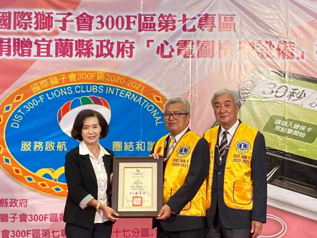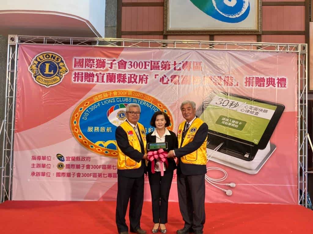 國際獅子會300F區第七專區於4月16日捐贈12台平板「心電圖檢測儀」給宜蘭縣政府,作為成人健檢時檢測心房顫動,以防治腦中風之用。這批設備由縣長林姿妙代表接受