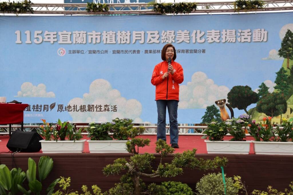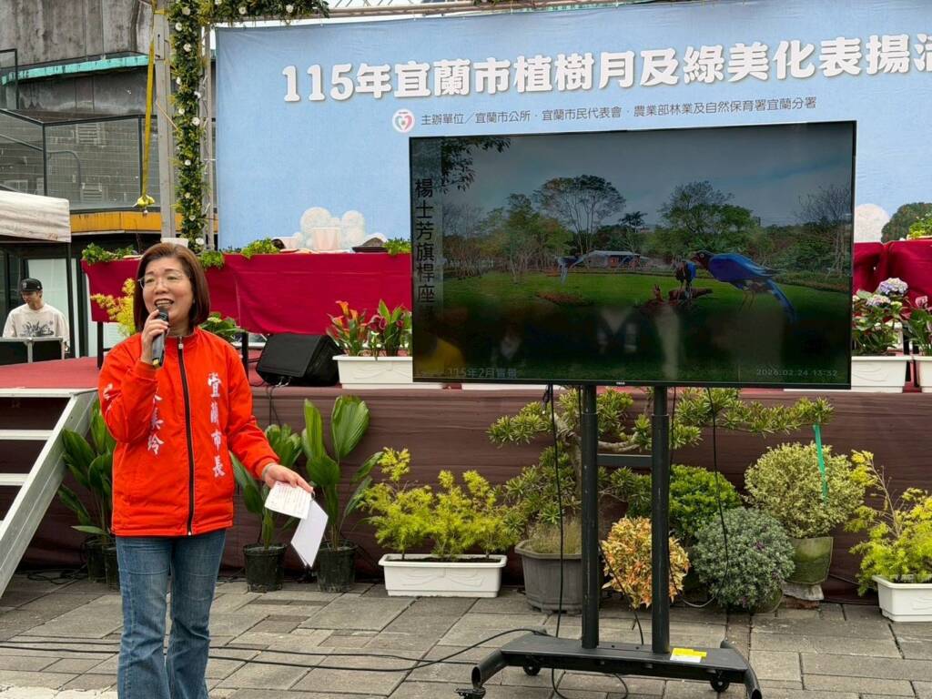 宜蘭市長陳美玲表示,公所致力於推動城市美學與綠色永續,本次特別透過 70 吋 LED 電視向市民展示包含「街道植栽更新、閒置土地綠美化、環保裝置藝術及年節草花佈置」等四大綠美化實績,市長強調,希望透過各界的參與,讓植樹綠化的觀念在市民心中成長茁壯,共同打造宜蘭市成為自然永續的宜居城市。