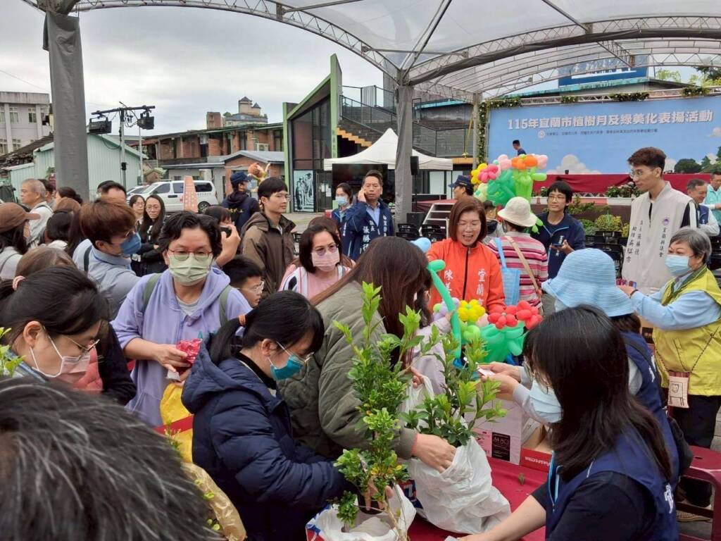 活動除了表揚致力於社區綠美化的績優團體外,公所更準備約 1,900 株各式綠化苗木供民眾兌換,包含山黃梔、金毛杜鵑、桂花、玉堂春、樹蘭、平戶杜鵑等豐富品種,大批民眾一早就帶著統一發票前來排隊兌換樹苗。此外,活動重頭戲「植樹儀式」由林保署宜蘭分署專家指導長官及貴賓進行移植教學示範,將苗木從育苗盆移至展示盆,象徵環境政策從規劃「培育」走向建設「扎根」。