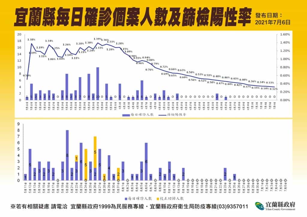 宜蘭今(6)日無新增個案。另外,為了讓居住在壯圍鄉、員山鄉、冬山鄉、大同鄉和南澳鄉的縣民,能夠就近施打疫苗,明(7)日起開放這5個鄉鎮72到74歲的民眾、55歲以上的原住民,可至當地衛生所接種疫苗,請符合資格的民眾先行預約。