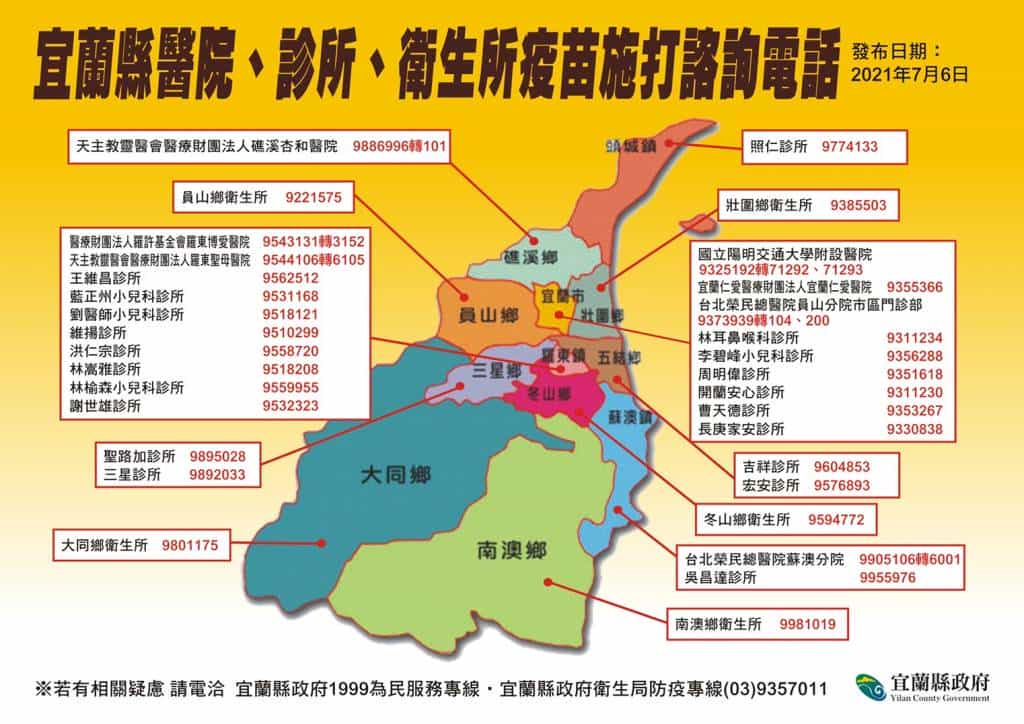 縣府表示,為了讓居住在壯圍鄉、員山鄉、冬山鄉、大同鄉和南澳鄉的縣民,能夠就近施打疫苗,明(7)日起開放上述5個鄉鎮72至74歲的民眾、55歲以上的原住民,可至衛生所施打疫苗,符合資格的縣民,明(7)日起可打電話至所屬居住地的衛生所預約。而衛生局也呼籲,請大家於居住地附近的衛生所施打疫苗,儘量不要跨區移動;至於其他鄉、鎮、市的民眾,請至先前公布的醫院或特約診所接種疫苗,並依預約或被通知的時間到場,避免人潮聚集,保護自身和他人安全。