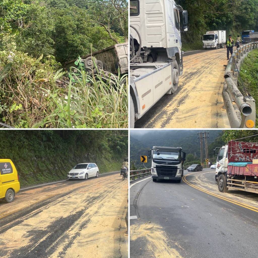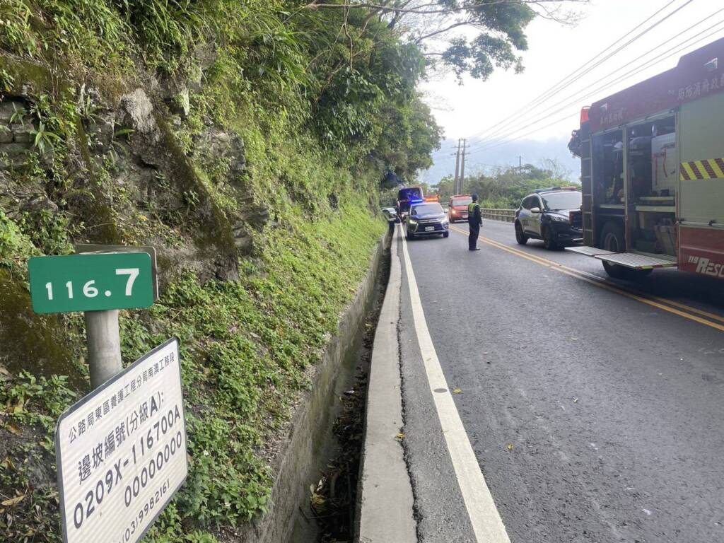 蘇澳分局於今(19)日上午8時許接獲通報,宜蘭縣南澳鄉台9線116.7公里處北上車道發生營業曳引車翻落山谷事故,警方隨即會同消防人員趕赴現場處置。
