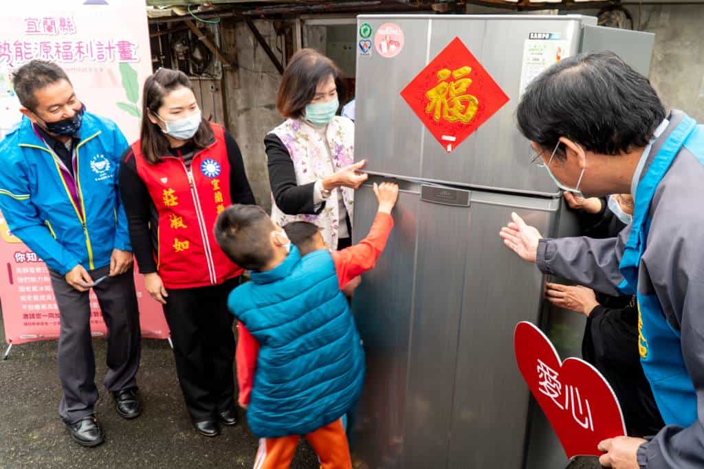 農曆春節即將到來,家家戶戶除舊佈新過新年,宜蘭縣縣長林姿妙偕同環保局黃政釧局長、社會處林蒼蔡處長及宜蘭縣愛加倍關懷協會,親送全新1級能效的節能冰箱給弱勢家庭,及將家戶中老舊燈具汰換為LED燈,不僅確保食材保鮮能力,更能節省每期電費支出,讓弱勢家庭感受到濃厚人情味與溫馨的年節氣息。