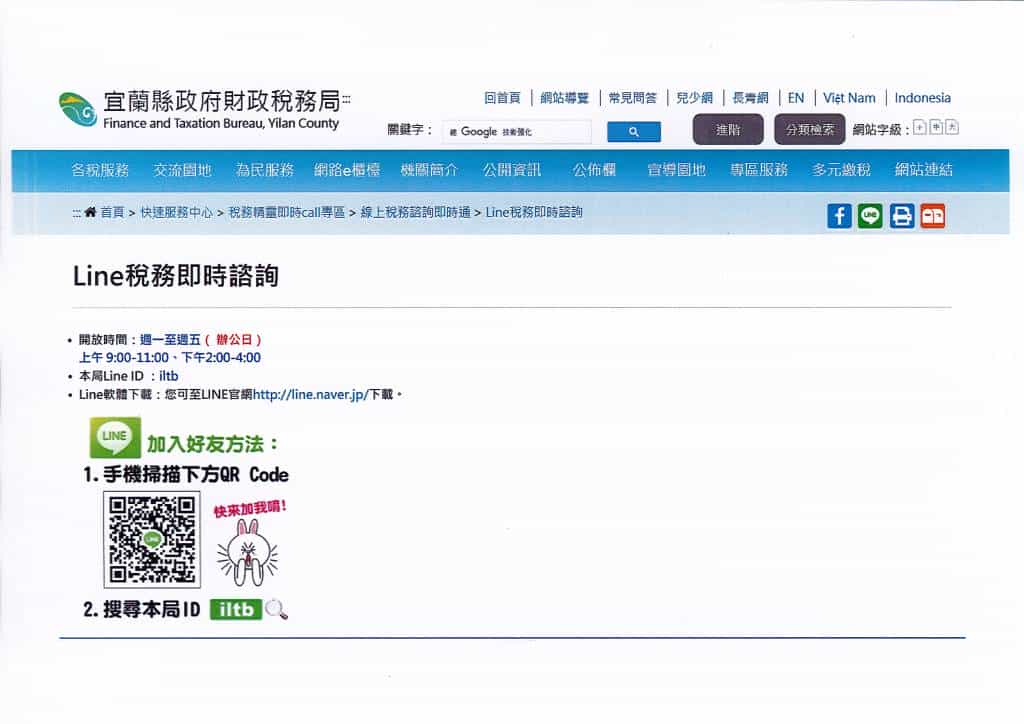 該局特別提醒,該局Line ID 為「iltb」,Line開放時間為週一至週五(辦公日),上午9時至11時,下午2時至4時,歡迎納稅者多加利用。另為使納保官提供納稅者更即時有效之協助,有關納保法相關規定、納保官姓名及聯絡資訊均已公告於該局網站(網址https://www.iltb.gov.tw/)納稅者權利保護專區項下,便利民眾查詢運用。又為便利納稅者提出申請,該局提供多元化申請方式,除以書面、傳真、言詞或網際網路方式申請外,也可撥打電話(03)9325101,溪北地區轉分機206;溪南地區轉分機300,該局納保官將為您服務。