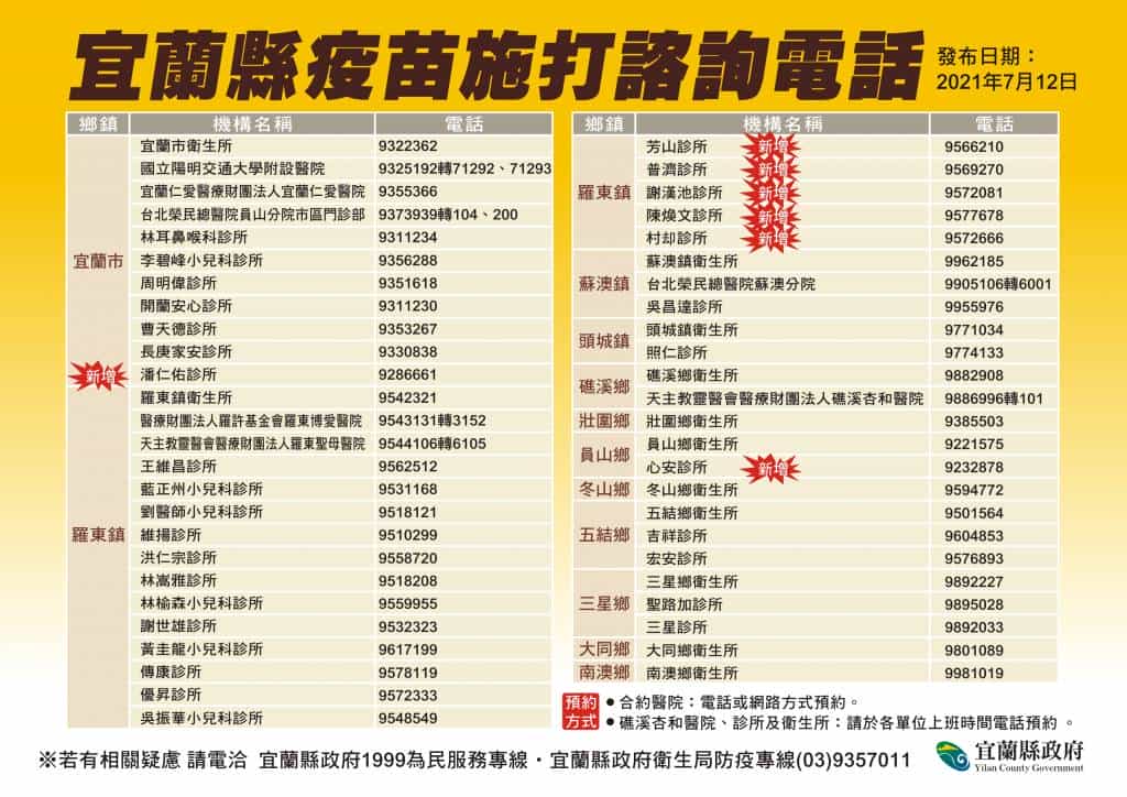 針對疫苗施打部分,縣府表示,新增7家診所加入疫苗接種合約醫療院所,分別是:潘仁佑診所、芳山診所、普濟診所、謝漢池診所、陳煥文診所、村却診所及心安診所。目前本縣共有7家醫院、31家診所及12鄉鎮市衛生所,合計有50家合約醫療院所,分布於各鄉鎮市提供疫苗接種服務。請民眾於施打前先進行網路或電話預約,再依照通知時間、地點到場施打,才能得到安全又迅速的接種服務。