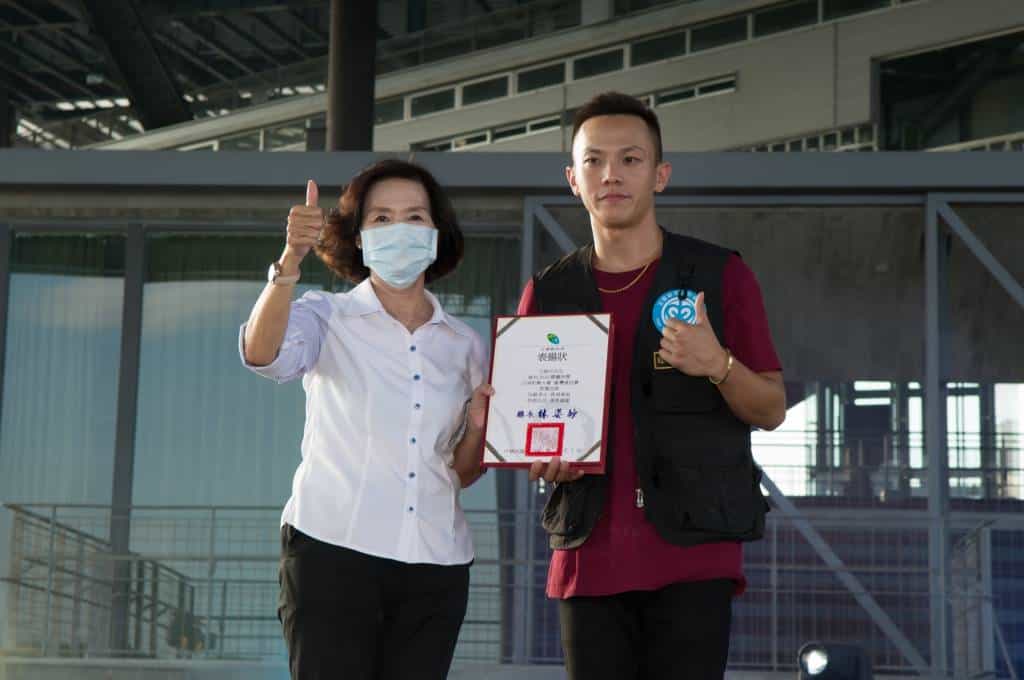 林縣長也提到,除了參展店家都是宜蘭在地青創品牌,h3次活動的舞台表演也是由宜蘭青年團體進行演出;其中開場表演的DJ Jim、同時是宜蘭縣街頭藝術協會理事長—王捷民,日前奪下「亞洲街舞大賽」台灣資格賽crew battle 冠軍,將代表台灣出國比賽,可說是宜蘭之光,因此今日也特別公開祝賀表揚。