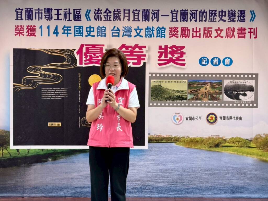 宜蘭市市長陳美玲表示,《流金歲月宜蘭河-宜蘭河的歷史變遷》這本書,講述的是河川和祖先之間精彩歷史故事的鄉土教育,同時也是環境教育的讀本,具有推廣的普遍性及教育性。宜蘭市鄂王社區發展協會此次榮獲國史館臺灣文獻館優等獎的肯定,實屬不易;期盼各社區也能書寫屬於自己社區的故事,讓後代與先民們有情感的連結,進而更珍愛自己的家鄉。