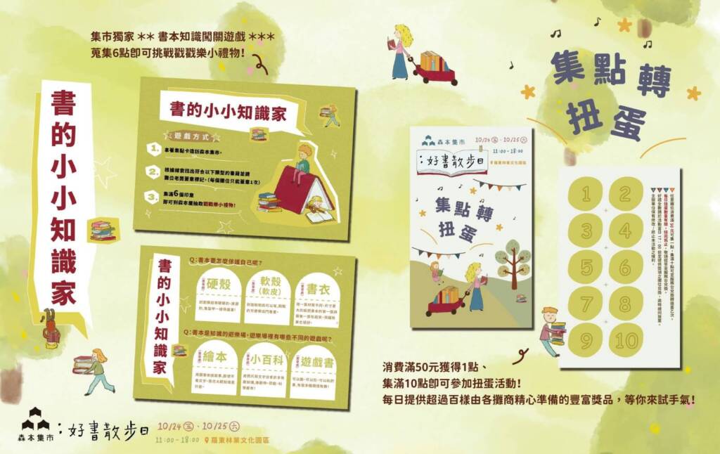 市集內容橫跨飲食、地方文化、手作設計、社會公益、地方創生與動物平權等主題,為羅東林場注入活潑多樣的文化氣息。活動期間除豐富攤位外,更安排12場台語繪本故事時間與12場文化主題短講,並設有兩項互動贈獎活動,鼓勵民眾參與交流。「書的小小知識家」闖關遊戲邀請孩童於書店攤位間尋找書籍知識線索,完成任務即可玩戳戳樂拿小禮物;而「集點轉扭蛋」活動則鼓勵民眾消費支持,只要達指定金額即可參加扭蛋抽獎,獎項由當日攤商提供的驚喜好禮組成。歡迎民眾於10月24日至25日蒞臨羅東林業文化園區,一起逛市集、看好書、嚐美食,漫步林間共度書香滿溢的秋日時光。