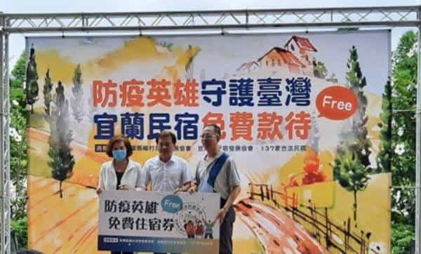 宜蘭縣鄉村民宿發展協會及宜蘭縣民宿協會集合兩會的力量,號召了 136 間 民宿、飯店、農場募集了 800 間房間,免費招待全國的防疫英雄住宿,希望用民宿 微薄的力量,勇挺前線的抗疫人員。這次的免費住宿券將透過觀光局捐贈給衛福部, 再轉給各單位的防疫團隊,宜蘭的好山水、豐富物產,相信也是首波防疫旅遊、安心旅遊的首選。