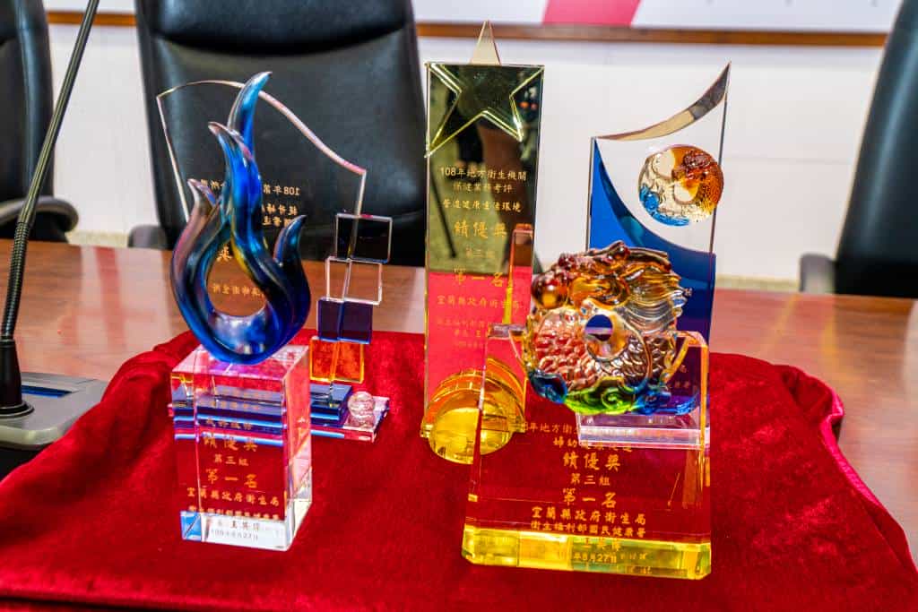 宜蘭縣政府衛生局推動公共衛生業務,績效卓著,108年經衛生福利部評定,榮獲15項獎項,其中:衛教宣導類–衛生教育業務綜合考評,榮獲優等獎;保健類–保健業務綜合考評,榮獲優等獎;檢驗類–檢驗業務綜合考評,榮獲表現優異獎;防疫類–防疫業務綜合考評,榮獲優等獎;此四類共15座獎,在今日縣政府縣務會議中獻獎給林姿妙縣長。