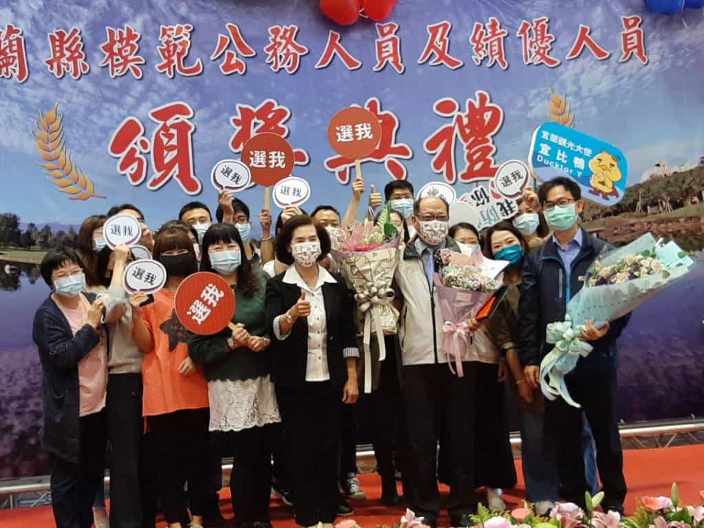宜蘭縣110年模範公務人員及績優人員頒獎典禮,今(28)日在縣府縣民大廳舉行,林姿妙縣長頒獎典禮表示,在去年嚴峻的疫情期間,因為各位同仁勇於任事、兢兢業業在各工作領域努力與付出,使得宜蘭縣防疫工作滴水不漏,縣民在健康安全的環境下能夠安居樂業,更感謝獲選同仁的家人默默支持,是獲選同仁成功不可或缺的後盾。