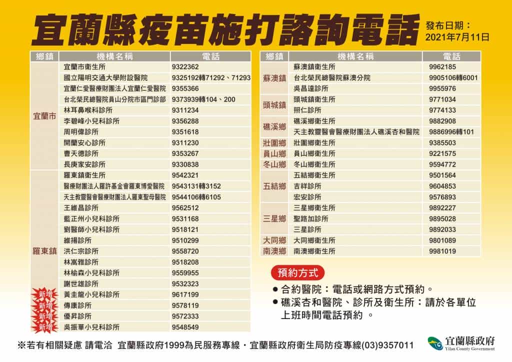 隨著疫苗擴大開打,宜蘭縣新增4家診所加入疫苗施打行列,請民眾依自身需求洽詢預約。