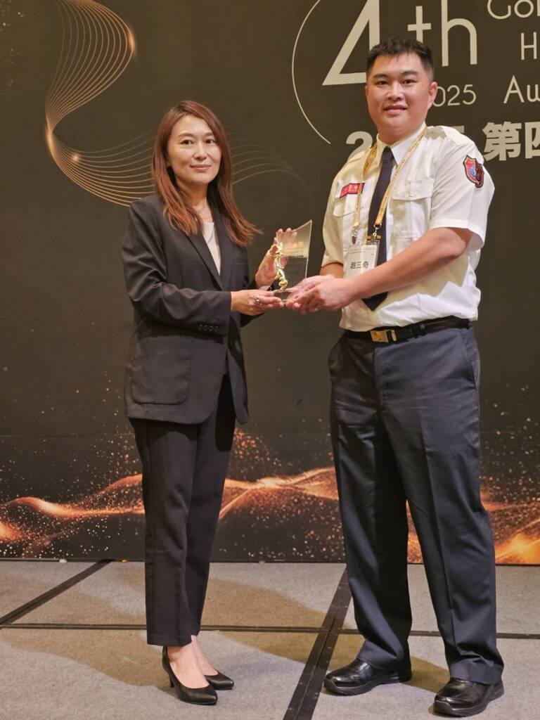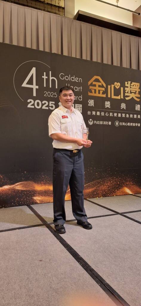 宜蘭縣政府消防局羅東消防分隊趙三奇,榮獲TAMIS台灣心肌梗塞學會「第四屆金心獎個人獎」殊榮,並於9月28日假新竹國賓大飯店第一會議室「2025台灣心肌梗塞學會秋季學術研討會」上接受表揚。
