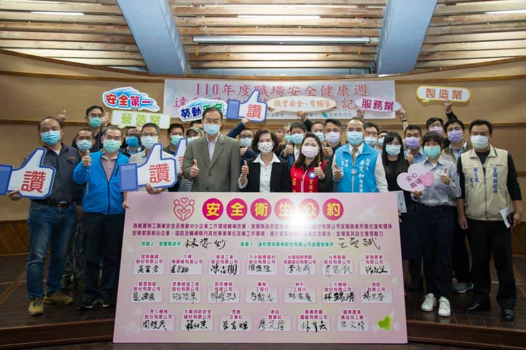 縣長林姿妙更進一步呼籲,各事業單位無論規模大小,工作時間長短,都應確實做好各項勞工安全衛生防護及管理,縣府期盼有更多企業能夠跟進,協助縣內中小企業提升職業安全衛生的水準,讓宜蘭的勞工能安心工作、健康生活。