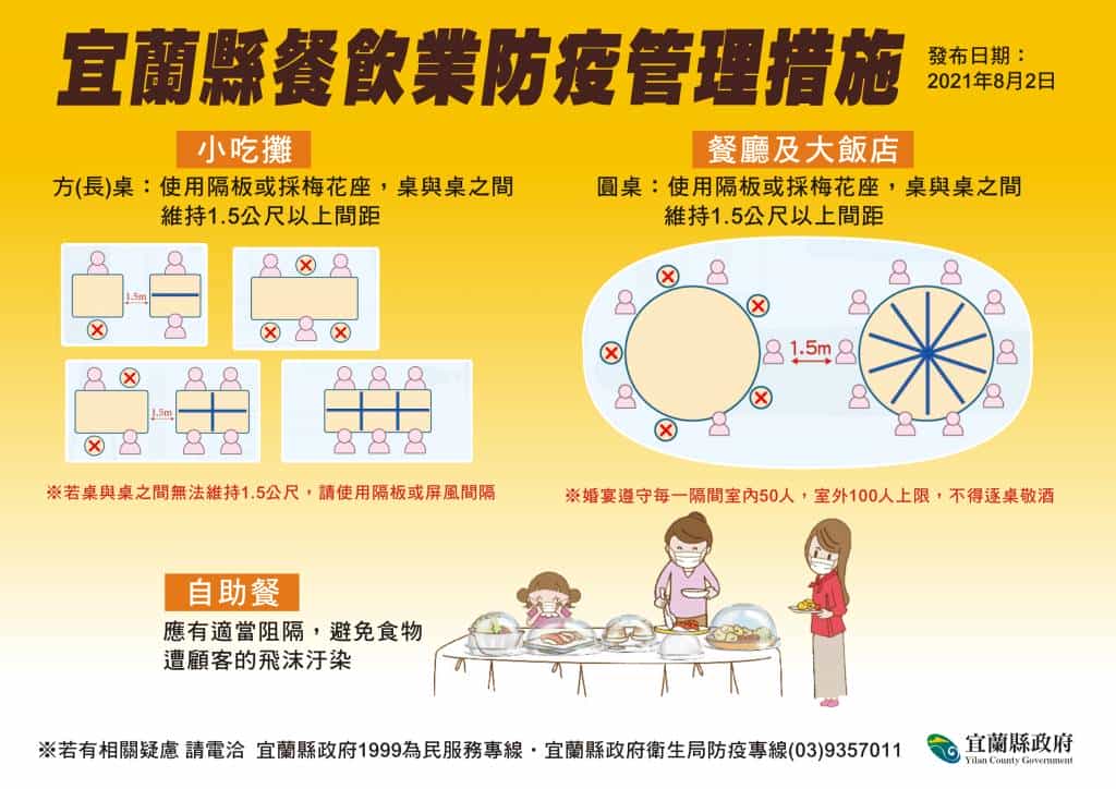 林縣長表示,明(3)日將開放餐廳內用,感謝縣內餐飲業、烹飪業、糕餅業、夜市、民宿業、觀光業及旅館業者共同努力。縣府在7月26日及28日分別召集相關業者團體、各夜市自治會的代表召開說明會,針對開放餐飲內用的重點,包括:使用梅花座或隔板、餐桌間相隔1.5公尺以上距離、以提供套餐或以專人分菜方式為主等規定,進行詳細說明和意見交流。