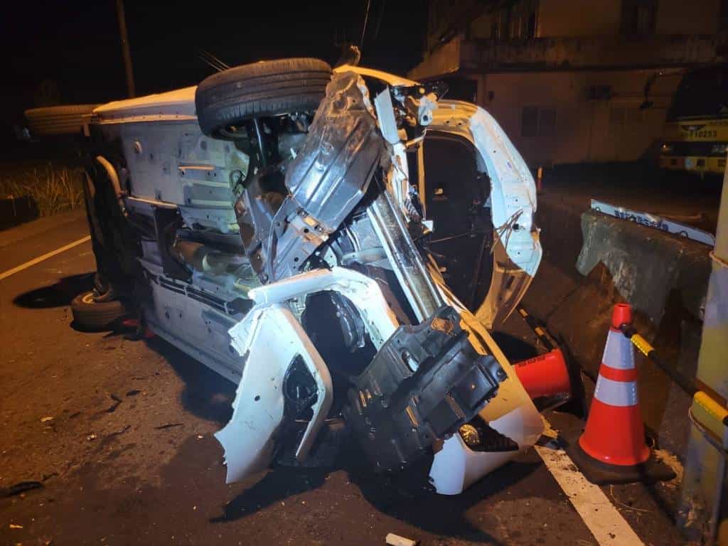 王姓駕駛頭部挫傷意識清醒,附載杜姓乘客腹部等多處受傷、張姓乘客胸腔等多處受傷;陳姓駕駛內出血及擦挫傷,附載高姓乘客頭部受傷,警消獲報到場立即將傷者送醫救治。經分別實施吐氣酒測與委由醫院抽血檢測,王姓與陳姓駕駛均無酒駕情事,詳細肇事原因待後續調查釐清。