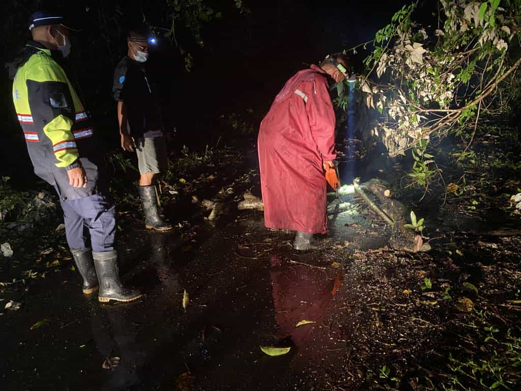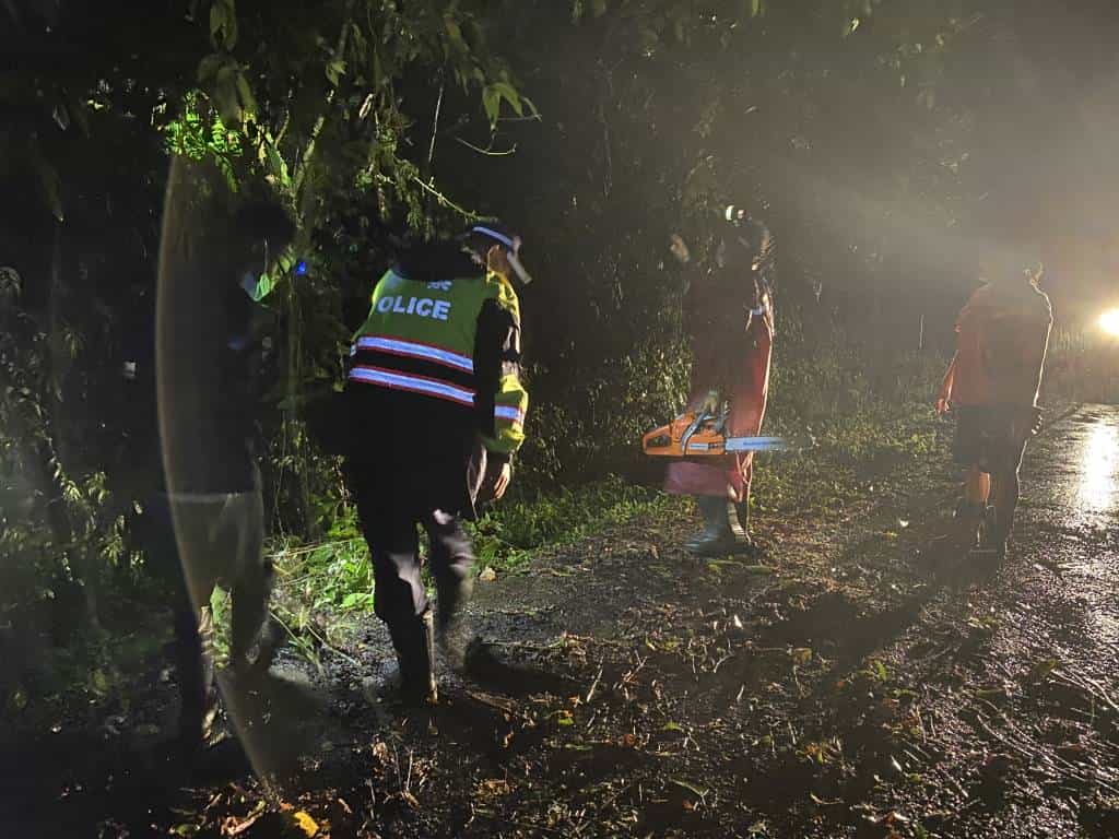 三星分局寒溪派出所副所長古世傑於日前晚上20時許勤務中獲報,在大同鄉華興巷往出水溪苗圃處有路樹倒塌橫擺路中央,致交通無法通行, 古員獲報後,立即前往現場查看,立即於該路放置交通錐後,遂通知村長、山警前來協力,經警民合力一番努力下,終以鏈鋸順利清除傾倒之路樹,