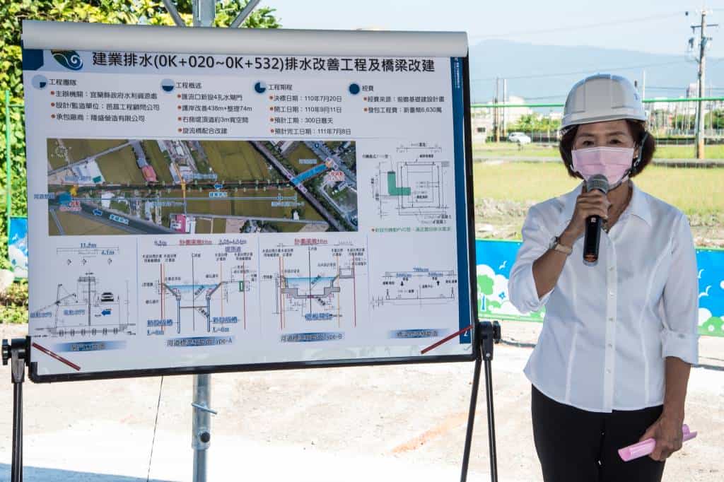 宜蘭縣政府去(109)年向中央爭取「前瞻基礎建設計畫」經費,獲補助辦理「建業排水(0K+020~0K+532)排水改善工程及橋梁改建」工程,林姿妙縣長今(30)日上午前往視察工程辦理情形,並責成水利資源處團隊同仁後續須在考量品質及安全的前提下如期完成工程建設,早日完成建業排水改善工作。