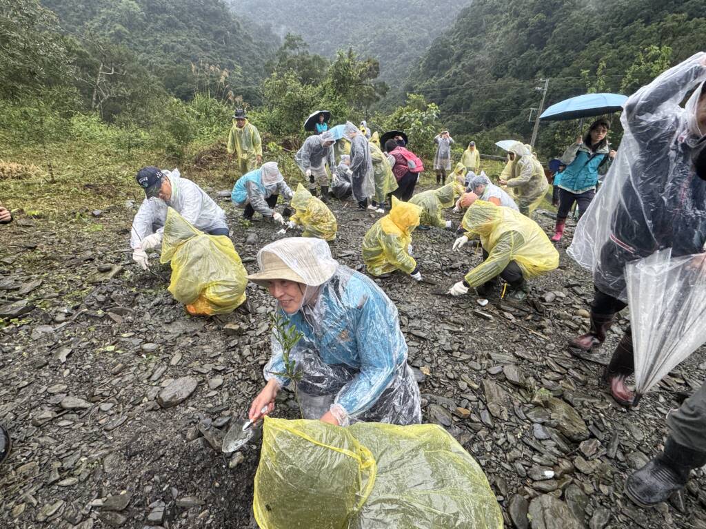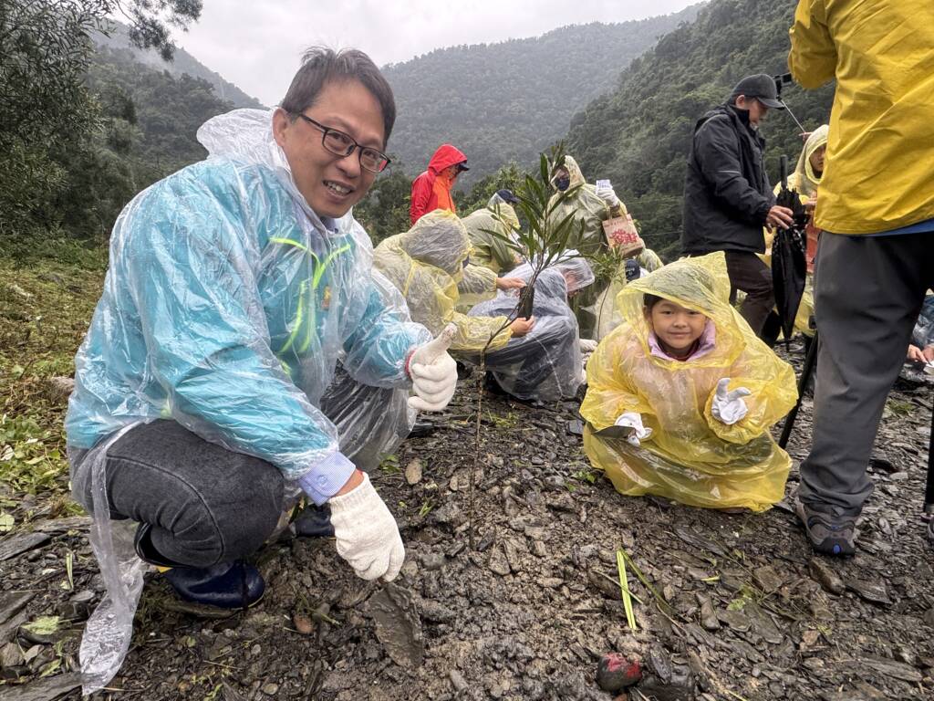 現場栽植相思樹及七里香各30株,落實「適地適種」原則,更發揮原生樹種卓越的生長韌性與固碳能力,為淨零碳排貢獻實質心力。蕭崇仁分署長強調,「水林一體」是林業核心,有健康的森林才有穩定的水源。