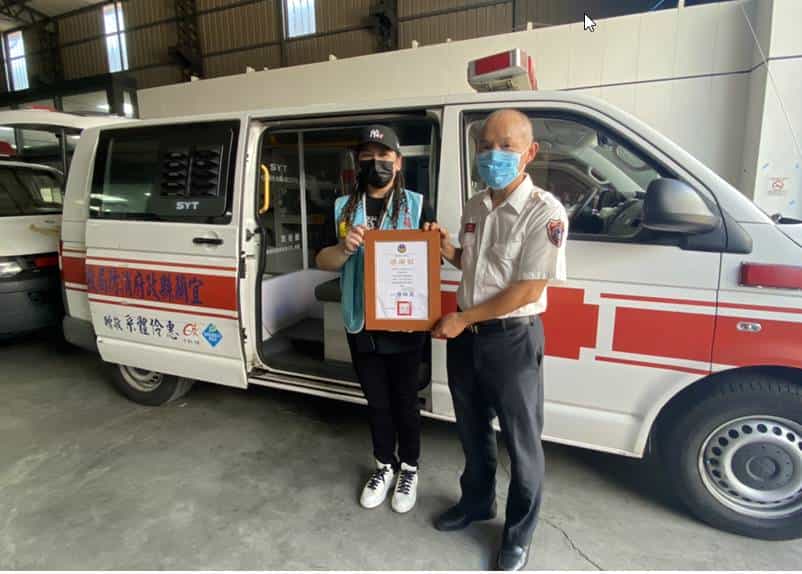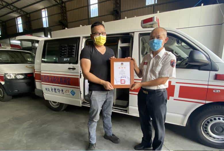 消防局徐松奕局長表示:感謝大蘋果小太陽活力平台的募資捐贈,將本縣專責救護車改裝成「空間分艙,人員分流」,並提供消防局防疫物資。次受贈改裝專責救護車五台已於今(5)日全部改裝完成,讓救護人員多一層保護並可減輕專責救護車消毒工作,共同為守護宜蘭縣民而努力
