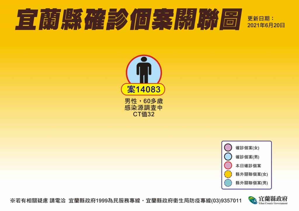 案14083為60多歲男性,是昨(19)日在台北某醫院篩檢站採檢,PCR結果為陽性的確診個案。該案多年沒跟家人聯絡,也沒有常住在宜蘭,因戶籍地在宜蘭,故中央列為本縣確診個案,並於今(20)早通知縣府衛生局。但從昨(19)日至今(20)日中午,台北和縣府衛生單位一直聯絡不上個案,目前已請警政單位協尋這名確診者。