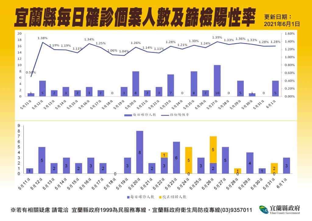 今(1)日宜蘭新增5例確診個案,縣府已進行相關個案的追蹤管理。宜蘭縣上周分配到2800支疫苗,今天再分配到1700支疫苗,除了原本醫護人員、第一線防疫警察、消防人員外,新增第一線防疫的清潔隊員為優先施打對象。林姿妙縣長強調,保障第一線防疫人員的健康,也等於保護縣民的安全。林縣長也懇請中央協助宜蘭縣,儘速購買到疫苗,以保障縣民健康。