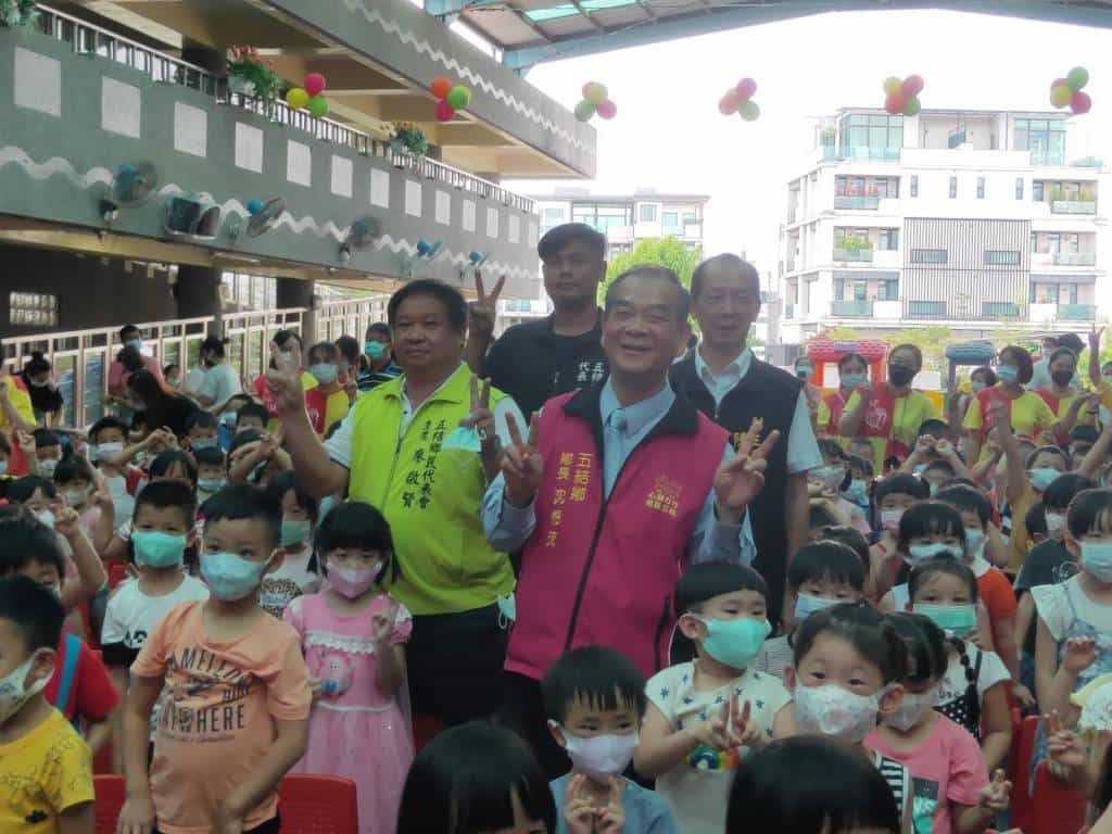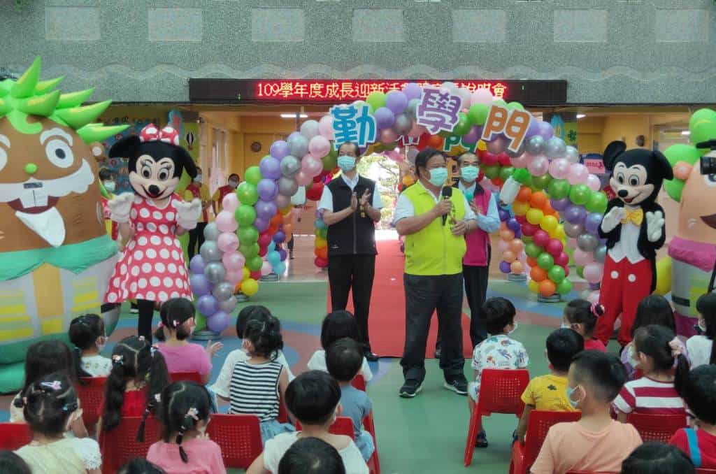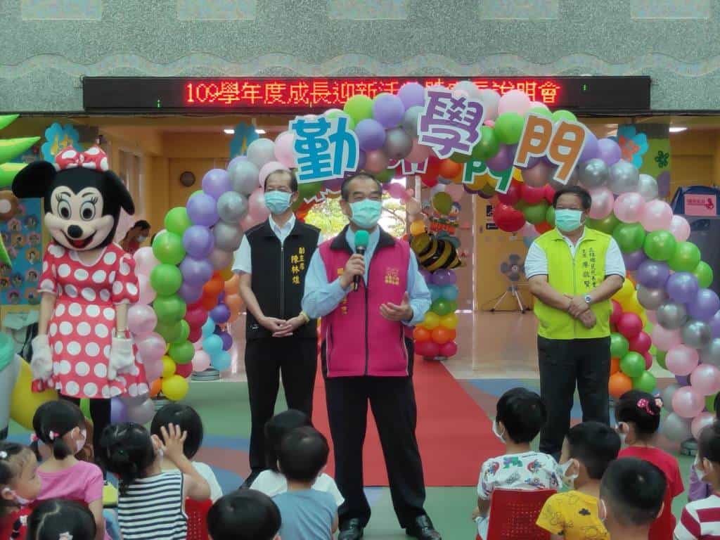 五結鄉立幼兒園8月17日(星期一)上午9時109學年度「成長迎新」活動,沈鄉長由大型玩偶陪同,與貴賓歡迎幼童入園,以故事、帶動跳、遊戲方式歡迎新朋友,並由沈鄉長及貴賓致贈幼兒每份小禮物,與幼兒同樂。