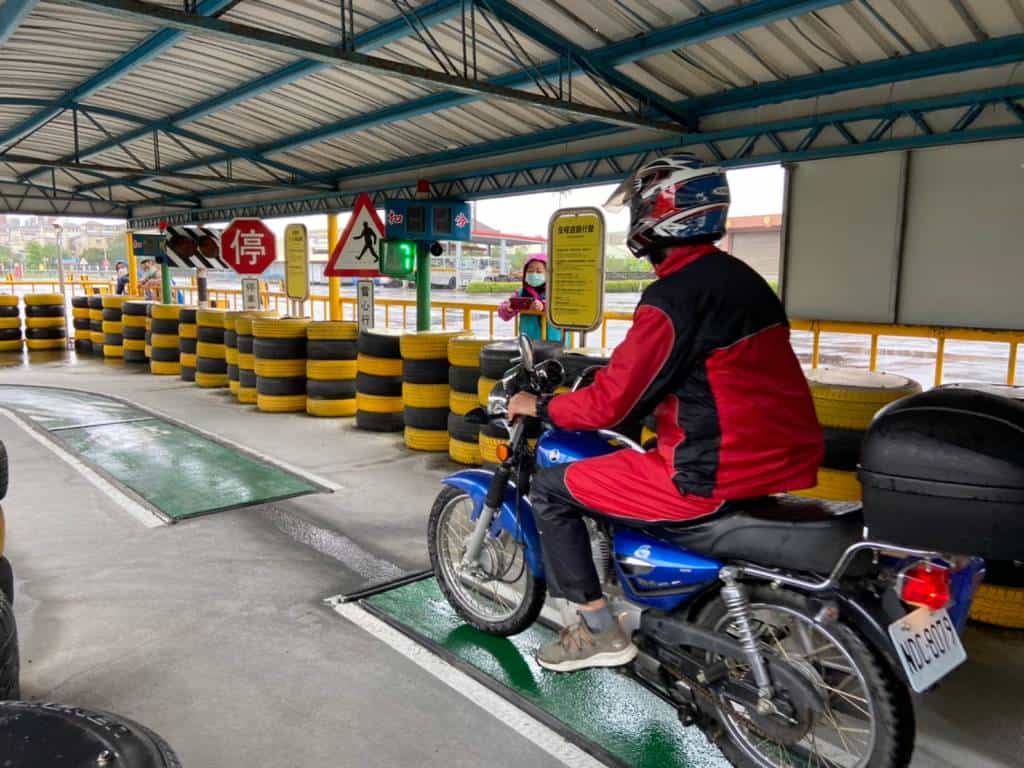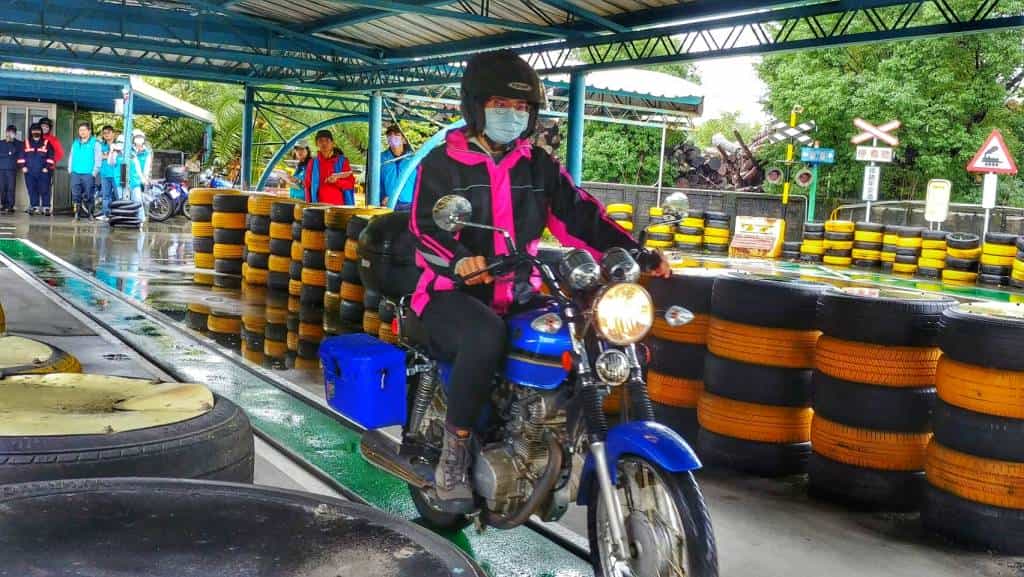 因山上執行勤務之需求,加上氣候路況與平地差距甚大,騎乘打擋機車成為一項重要必備技能,故術科測驗路考第一項直線平�駕駛(直線平衡駕駛通過時間不得低於7秒),在考試壓力趨使下,讓在埸考生,直呼簡直是魔王關卡!負重考試速度最快者5分20秒,堪稱飛毛腿。