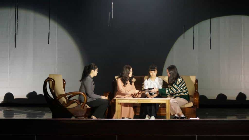 而第二齣劇「藍衫女孩」則是由蘭女學生共同創作的劇本,內容除了高中學生所關心的升學主義外,更細膩地勾勒了親子關係的相互羈絆、甚至於嘗試觸碰了敏感的自殺議題。課程進行中,師生也多次針對此議題對話與討論,也納入輔導老師一同商議,表演層次相當豐富,不僅一般學生看了有所共鳴,家長與老師也很有感觸。